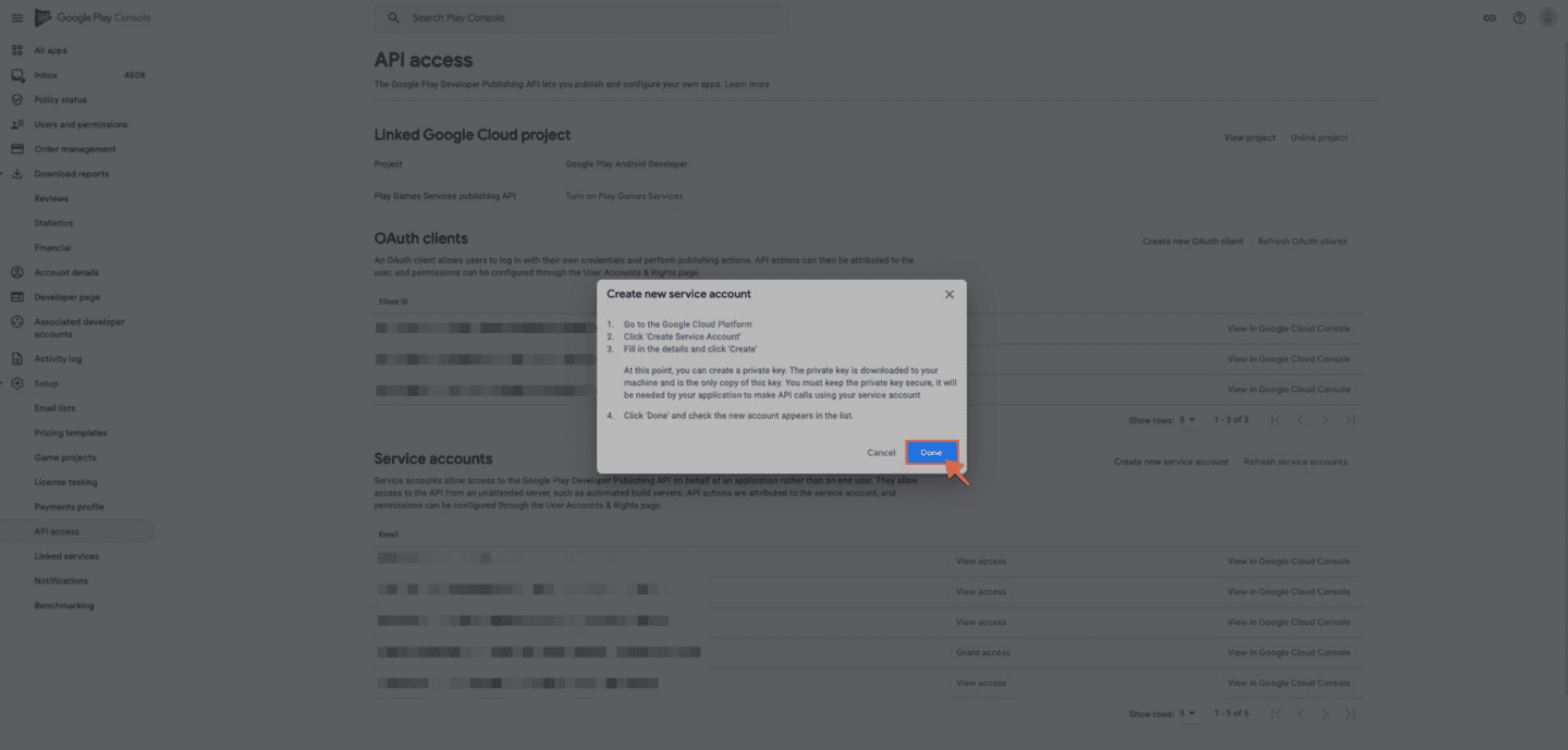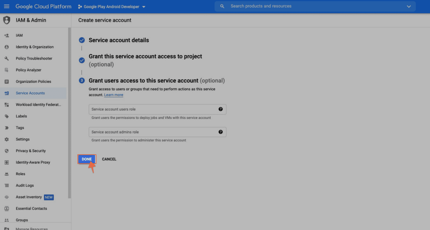 1. You can now close Google Cloud Platform and go to your Google Play Console account
